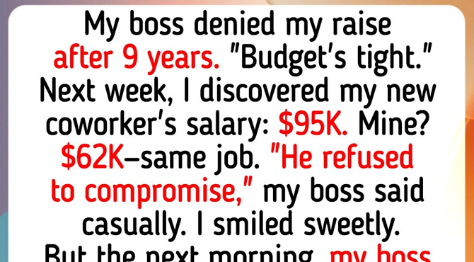 My boss denied my raise after nine years. “No budget.” The next week, I discovered my new coworker’s salary: $95K. Mine? $62K — same job. “He didn’t agree to less,” my boss shrugged. I smiled sweetly, “Good for him.”