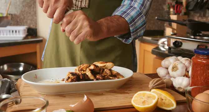 I spent almost two hours in the kitchen cooking Kate’s favorite meal from scratch. Chicken marsala with roasted garlic mashed potatoes and green beans almondine.