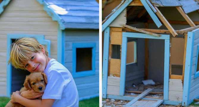 It was destroyed! Splintered wood lay scattered, the roof crushed in, and his blanket soaked in mud. The “emergency cookie storage” Mason had insisted on was ripped out and buried under a pile of broken boards. But the worst part?
