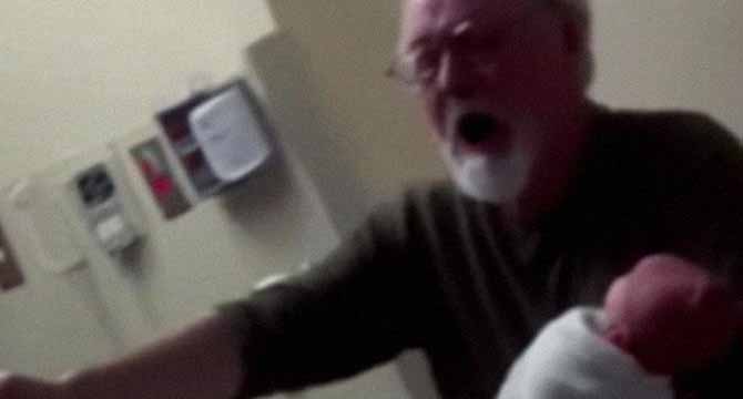 Then, the grandfather took his turn. But as soon as he looked down at the baby, his eyes widened, fixated.