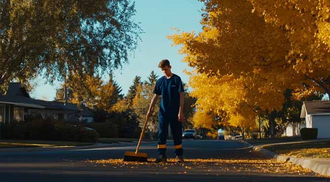 As I turned a corner, I saw him. He was a young man with a slight limp, sweeping leaves off the sidewalk in front of a row of shops.