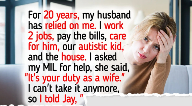I (39F) have been married to Jay (41M) for almost 20 years. Since day one, I’ve been the one keeping our lives afloat. I work two jobs, pay the bills, take care of our house, and raise our autistic son. Meanwhile, Jay just exists.