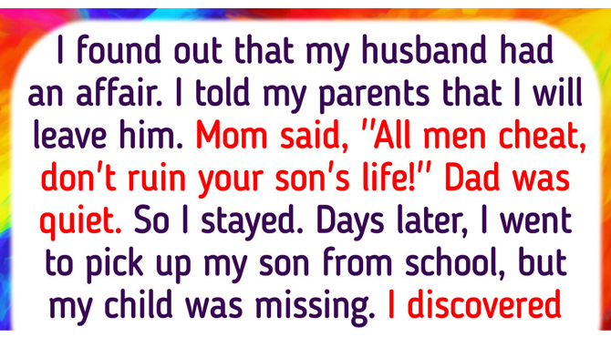 I found out that my husband had an affair. I told my parents that I would leave him. Mom said, “All men cheat, don’t ruin your son’s life!” Dad was quiet. So I stayed.