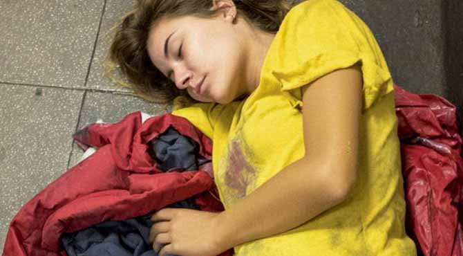 A woman was curled up on the dirty floor near the back of the car, using a torn jacket as a blanket. She was obviously pregnant, and her hair was matted and unwashed.