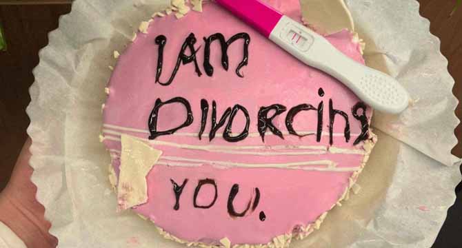 But I was late, and I had forgotten. Now, this? The cake… this was Jake’s response? Divorce. A cake with a slap-in-the-face message.