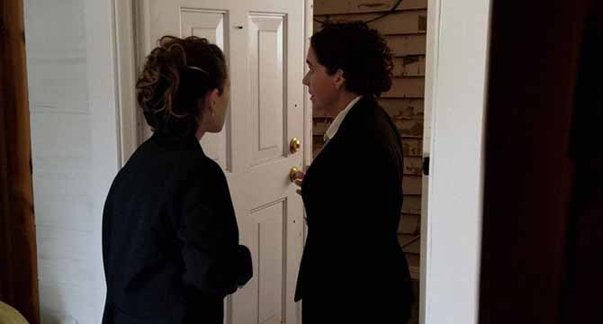 In the center of it all stood a realtor in a crisp blue suit, her voice cheerful and professional.