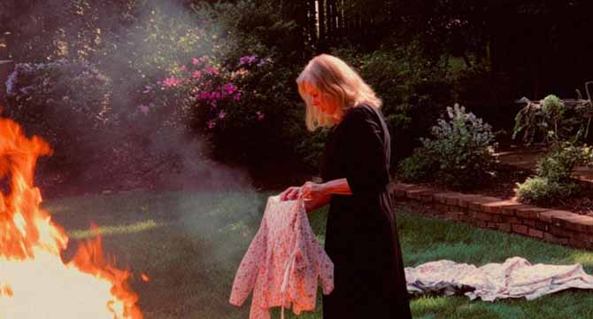 In the middle of the lawn stood Melinda, towering over a crackling bonfire, poking at it with a stick as if she were tending to something important. At first my brain couldn’t process what I was seeing, but then the flames shifted and I caught a glimpse of lace.