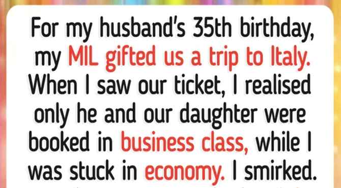 But when the tickets arrived, my excitement turned into humiliation. My husband and our daughter were booked in business class, while I was shoved into economy. When I asked about it, my mother-in-law gave me a mocking smile and said I should be grateful I even got to go.