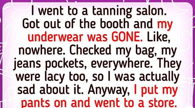 So I went to a tanning salon the other day. Got out of the booth, getting dressed… and my underwear was GONE. Like, nowhere. Checked my bag, my jeans pockets, everywhere. Nope. Nothing. They were lacy too, so I was actually sad about it. Anyway, I put my pants on, left super confused. Went to a store afterwards still thinking, “Where the hell are my panties?” And then it hit me. I had used them to tie up my hair inside the booth because I didn’t have a scrunchie. So yes… I walked around the street and into a store with lace panties in my hair. © Podslushano / Ideer
