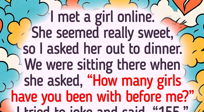 I met a girl online. She seemed really sweet, so I asked her out to dinner. We were sitting there when she asked, “How many girls have you been with before me?” I tried to joke and said, “155.”