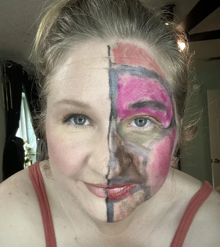 “My kids did my makeup. My son (10) was art inspired. My daughter (12) was going for classic, and I was actually really impressed by what she did.”