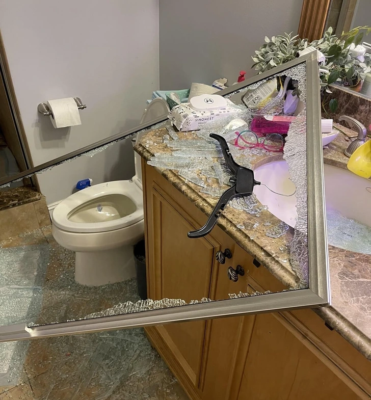 “I had the shower door wedged open with a broom. Daughter tried to close the shower door. Oops.”