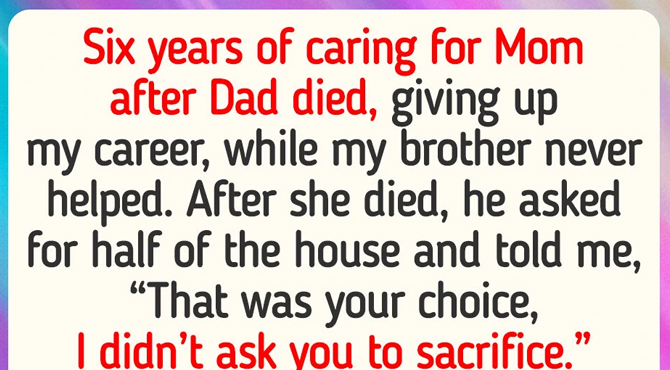 “When Dad passed, Mom couldn’t manage on her own. So I moved in with her. For six years, I cooked, cleaned, handled the bills, and put my own career on hold. My brother kept promising he’d ‘help out someday,’ but that day never came.