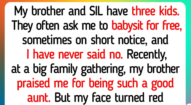 A few weeks ago, we had a big family dinner. During the meal, my brother said I was such a good aunt. I smiled, but then my SIL laughed and said something that left me speechless. She said, ‘Of course she’s a great aunt and a perfect free babysitter. But we all know why she’s always so happy to watch the kids!’