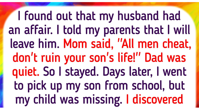 I found out that my husband had an affair. I told my parents that I would leave him. Mom said, “All men cheat, don’t ruin your son’s life!” Dad was quiet. So I stayed.