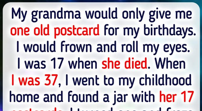 When I was 37, I went to my childhood home and found a jar with her 17 postcards. I turned one and froze. It was not just a random postcard. She had written a small poem about me, filled with specific details from that year of my life. Some were sweet little observations; others were pieces of advice for my “future self.”