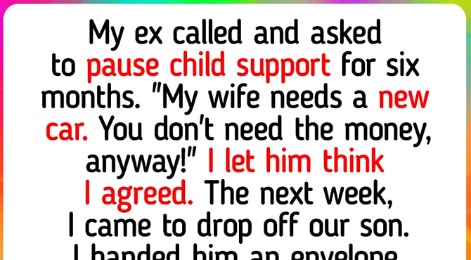 Inside was a letter: “Since you won’t pay child support for six months, I’ll also be taking a break. Our son will be living with you full-time for six months. Please be ready to take on all financial, educational, and medical needs.” He snapped and said that this is ridiculous. I just got in my car and drove off.