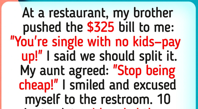 At a restaurant, my brother pushed the $325 bill to me: “You’re single with no kids—pay up!”