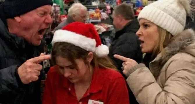 Not annoyed muttering—full-volume, echo-down-the-aisles yelling.