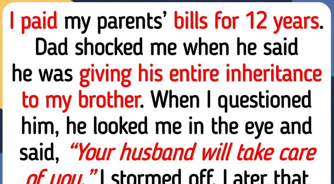 Instead, he shocked me by saying he was giving his entire inheritance to my brother. I honestly thought I misheard him. When I questioned him, calmly at first, he looked me straight in the eye and said, “Your husband will take care of you.”