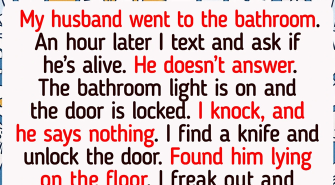 - So my husband went to the bathroom. An hour later I text and ask if he’s alive. He doesn’t answer. I go into our bedroom, the bathroom light is on and the door is locked. I knock he says nothing. I knock louder and call his name. Nothing. I find a knife and unlock the door.