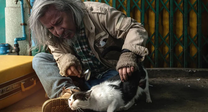 A little black cat with eyes like halogen lights, tucked into David’s chest like a secret. Every single night, she was there. He’d zip his worn-out jacket halfway and let her nestle in like a heartbeat. It wasn’t cute — it was intimate, like the two of them had survived something brutal together and this was their pact: I’ve got you.