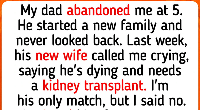 I told her no. I don’t owe him anything after the way he treated me. He made his choices when he abandoned my mom and me, and I feel no obligation to put myself through a major surgery for someone who’s essentially a stranger to me.