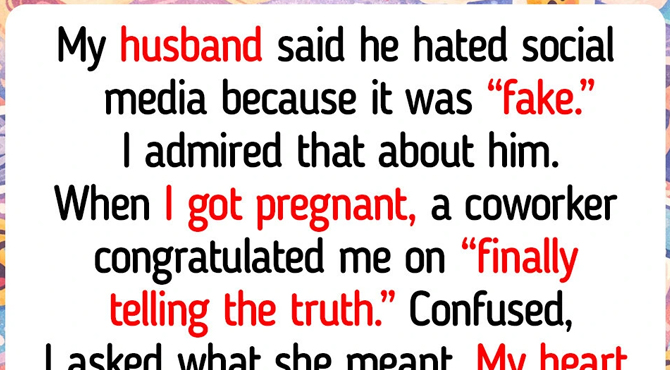 My husband said he hated social media because it was “fake.” I admired that about him. When I got pregnant, a coworker congratulated me on “finally telling the truth.” Confused, I asked what she meant. She showed me an account with my husband’s face, a different name, and a life where I didn’t exist.