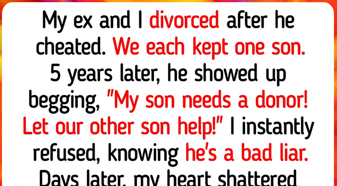 For the most part, we kept that distance. Then, out of the blue, my ex showed up at my door, completely frantic and utterly unrecognizable. He was begging, tears streaming down his face, and said the words no mother ever wants to hear: “My son needs a donor! Let our other son help!”