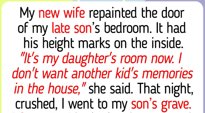 My new wife repainted the door of my late son’s bedroom. It had his height marks on the inside. “It’s my daughter’s room now. I don’t want another kid’s memories in the house,” she said.
