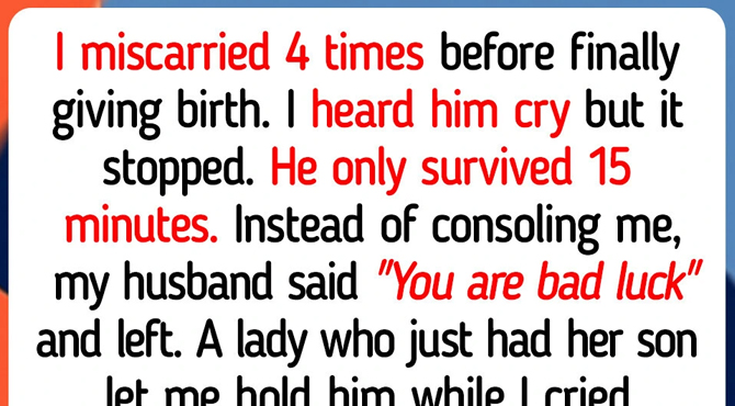 I miscarried four times before finally giving birth. I heard him cry, just once, and then the room went quiet. He only survived fifteen minutes. I was still shaking when my husband looked at me and said, “You are bad luck.” He walked out and never came back. I was numb, staring at the wall, when the woman in the next bed asked the nurse if I could hold her newborn for a moment. She didn’t know me. She didn’t owe me anything. She just saw someone breaking and trusted me with her baby while I cried into that tiny blanket.