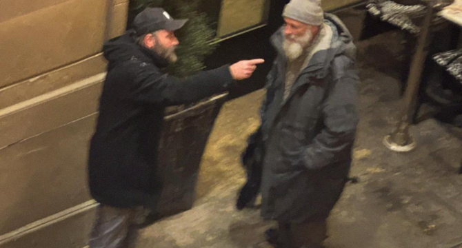 A man sat near the brick wall by the dumpster, wrapped in a thin coat that looked too light for the cold. His beard was uneven, and his hands trembled as he tried to rub warmth into them.