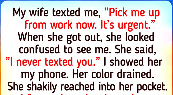 My wife texted me, “Pick me up from work now. It’s urgent.” When she got out, she looked confused to see me. She said, “I never texted you.” I showed her my phone, but we both froze.