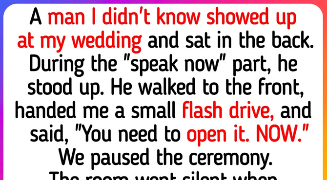 A man I didn’t know showed up at my wedding and sat in the back. During the “speak now” part, he stood up. The room went silent. He walked to the front and handed me a small flash drive.