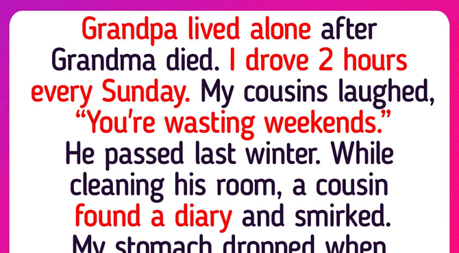 While cleaning his room, a cousin found a diary and smirked. My stomach dropped when I opened it. First page said: “Sunday #1, my grandson came to visit today.”