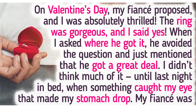 The woman shared, “On Valentine’s Day, my fiancé proposed, and I was absolutely thrilled! The ring was gorgeous, and I said yes! When I asked where he got it, he avoided the question and just mentioned that he got a great deal.