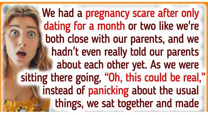 We had a pregnancy scare after only dating for a month or two like we’re both close with our parents, and we hadn’t even really told our parents about each other yet.