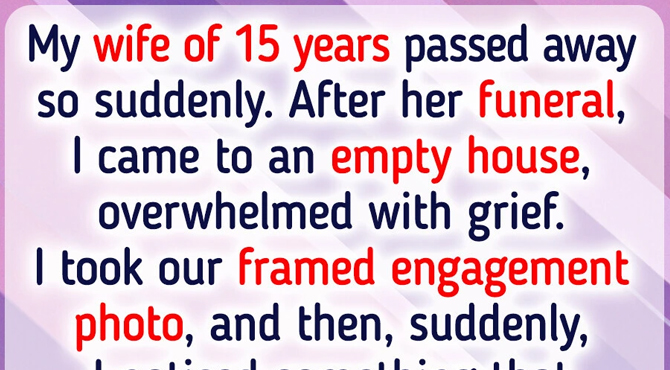 My wife of 15 years passed away so suddenly. After her funeral, I came to an empty house, overwhelmed with grief. I took our framed engagement photo, and then, suddenly, I noticed