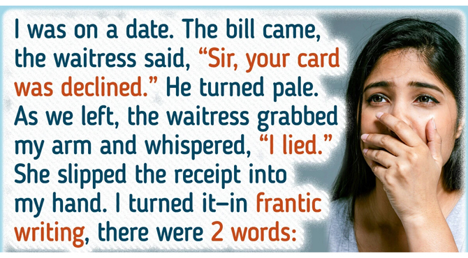 I couldn’t be more grateful to that waitress. Her courage, kindness, and quick thinking saved me from something terrible. I realized she had staged the declined card incident just to have an excuse to slip me that message.