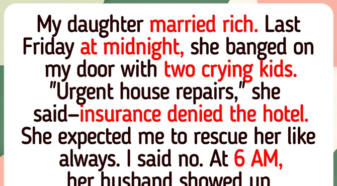 My daughter married into money five years ago. Last Friday at midnight, she banged on my door with her two crying kids. She said their house needed “urgent repairs,” and insurance refused to cover a hotel.