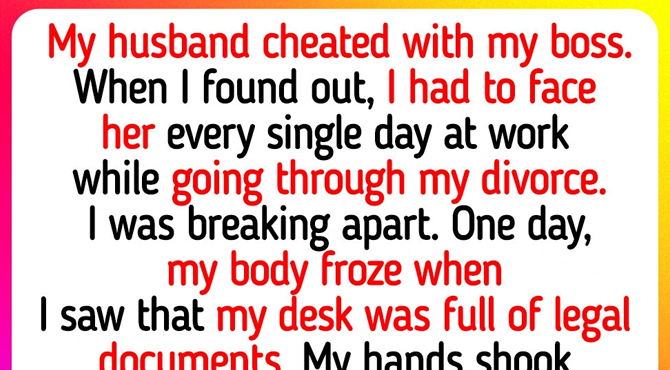 My husband cheated with my boss, so every day at work felt like walking into the worst part of my life. She’d pass by my desk with that same little smirk, like she knew exactly what she’d done. I was barely holding it together while dealing with the divorce on top of it. One morning I walked in and saw my desk covered in legal documents, and my whole body just froze. My hands were shaking when I started flipping through them, thinking she was trying to intimidate me somehow. They weren’t from her; they were from the company’s legal team, documenting complaints other employees had already filed against her. Turns out people had noticed way more than I thought, and I wasn’t alone in any of it. A week later she was gone, and the only thing my new manager said to me was, “You should’ve never had to deal with that by yourself.”