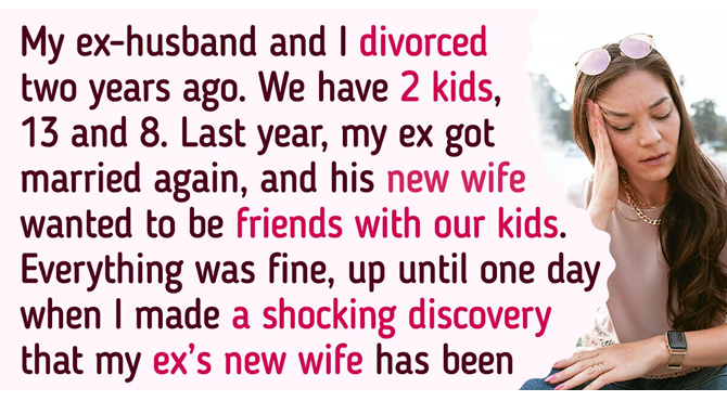 “For me personally, the main concern has always been how our kids would communicate and get along with our new partners. Since Mike created a new family earlier than I did, his new wife became an object for my direct attention from the first moment when she met our kids. But I didn’t have reasons to worry, because Emma wanted to be friends with them, and she seemed to be doing her best to bond with the kids in the most cordial way possible. I didn’t object about their warm relationship, the kids were allowed to go to their place and stay there as long as they wanted. They all went on vacations together and spent nice time, which I thought was cool. Everything was fine, up until one day, when I made a shocking discovery about my ex’s new wife.”