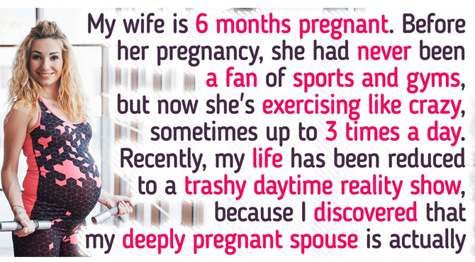 “My wife is 6 months pregnant. Before her pregnancy, she had never been a fan of sports and gyms, but now she’s exercising like crazy, sometimes up to 3 times a day. Recently, my life has been reduced to a trashy daytime reality show, because I discovered that my deeply pregnant spouse is actually having much more than an ordinary hobby.”