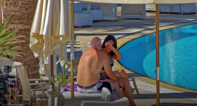 He had brought another woman to a public pool in the middle of the day, but now he wanted privacy.