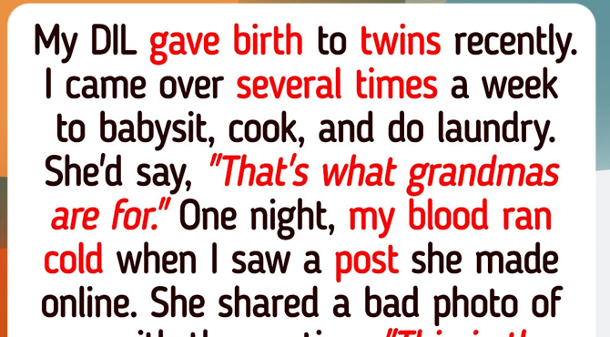 My DIL gave birth to twins recently. I started going over several times a week, helping with cooking, laundry, and just holding the babies so she could rest. She’d always joke, “That’s what grandmas are for,” and I acted like it didn’t hurt but honestly it did. Then one night, I saw a post she made online. It was a bad photo of me, like REALLY bad, mid blink, holding one of the babies awkwardly, with the caption, “This is the official babysitter of my kids. Thanks to this woman, I was able to go have a lunch date with my girlies! #Grateful ❤️💩.” It honestly hurt more than I expected. I didn’t say anything right away. The next time I came over, she brought it up herself. She said she didn’t realize how it would come across and that she really was grateful. She deleted the post and later shared a new one, this time thanking me properly. It didn’t erase the sting completely, but the fact that she owned it without being asked meant she realised her own mistake.