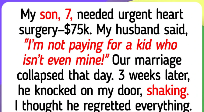 My son, 7, needed urgent heart surgery—$75,000. My husband has the money, but he said, “I’m not paying for a kid who isn’t even mine!” In that moment, our marriage was over. We divorced, and I moved out. I took out loans to save my son’s life. While he was in surgery, I sat outside the operating room completely alone, praying he would make it. He did. But when I finally came home, I was facing an empty apartment, crushing debt, and no idea how I was supposed to move forward. I started working double shifts just to keep us afloat. 3 weeks later, my husband knocked on my door, shaking. I thought he just regretted everything. But I froze when he showed me a GoFundMe page on his phone — my son’s name at the top, $78,312 donated under my husband’s name. My neighbors had launched the page the day they found out what happened. Word spread, strangers gave the rest, and somehow it reached him too. He donated, then showed up at my door thinking that was enough to undo everything. He said, “I just want us to fix this.” Like that sum bought him a second chance. I couldn’t speak. My neighbors had built something beautiful out of pure love for my son. He had simply written a check and called it redemption. My son is recovering now, laughing again, asking for pancakes every morning — saved by a village of strangers and one man who finally did the right thing, even if for the wrong reasons. I kept the money. I closed the door. And I’ve learned that real kindness never knocks expecting something in return.