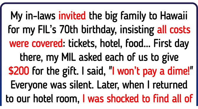 My in-laws invited the extended family to Hawaii for my father-in-law’s 70th birthday. They insisted all costs were covered: tickets, hotel, food, etc.