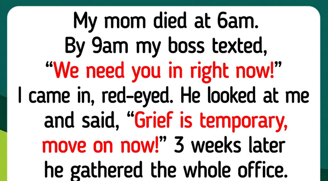 My mom died at 6am on a Tuesday. By 9am my boss had texted saying he needed me in right now. I came in red-eyed and still in the clothes I had slept in. He looked at me across his desk and said, “Grief is temporary, move on now!”